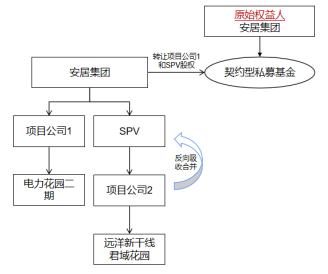 1、安居集團設立項目公司1、項目公司2以及SPV,將電力花園二期物業(yè)資產(chǎn)納入項目公司1,將遠洋所干線君域花園物業(yè)資產(chǎn)納入項目公司2,再將項目公司2的股權轉讓至SPV。