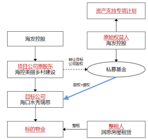 3、私募投資基金向海發(fā)控的全資子公司??剜l(xiāng)建支付目標公司股權轉讓價款,取得目標公司100%股權從而間接控制底層資產(chǎn)權益。