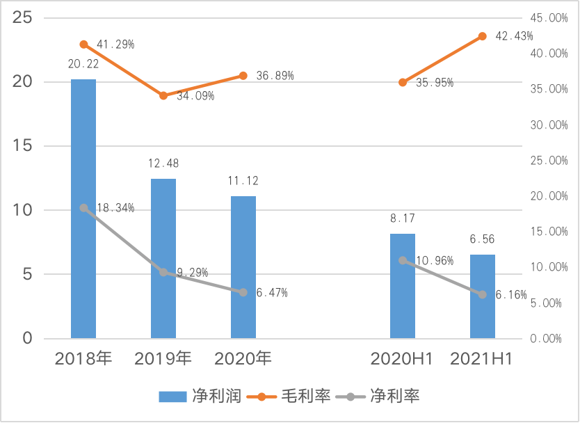 在盈利指標(biāo)上,萬(wàn)達(dá)商管歸母凈利潤(rùn)出現(xiàn)了連年下滑的局面,從2018年的20.22億元下降至2019年的12.48億元,2020年進(jìn)一步降至11.12億元,2021年上半年同樣同比下降19.7%。毛利率企穩(wěn)有所回升,今年上半年達(dá)到42.43%,創(chuàng)下近三年新高;銷售凈利率同樣出現(xiàn)了下滑情況,上半年已經(jīng)低至6.16%,與高毛利水平不相匹配,主要是由于今年上半年企業(yè)為調(diào)整運(yùn)營(yíng)模式,出售附屬公司從而你導(dǎo)致虧損13.2億。