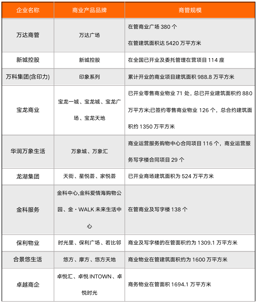 根據(jù)弗若斯特沙利文的數(shù)據(jù)顯示,截至2020年年末,萬(wàn)達(dá)商管在管建筑面積排在中國(guó)乃至世界第一的位置,超過(guò)中國(guó)第二名至第十名的總和;儲(chǔ)備建筑面積以及管理第三方商業(yè)廣場(chǎng)數(shù)量皆位于首位。