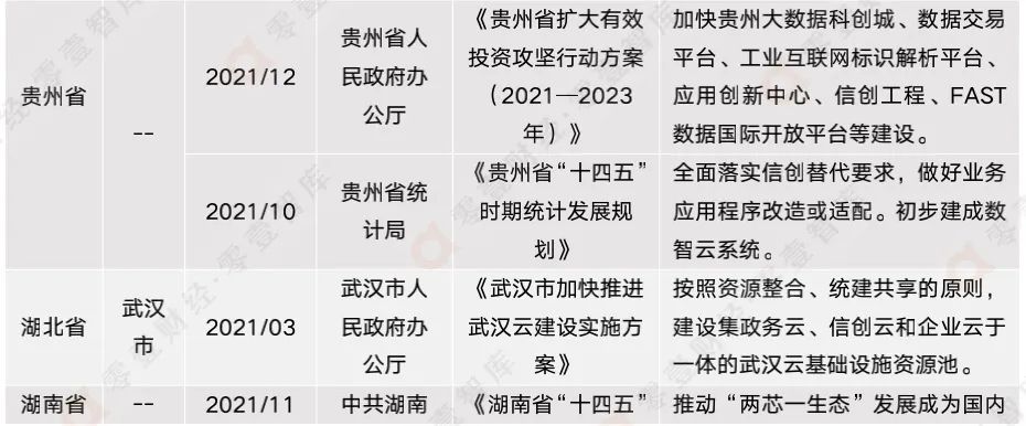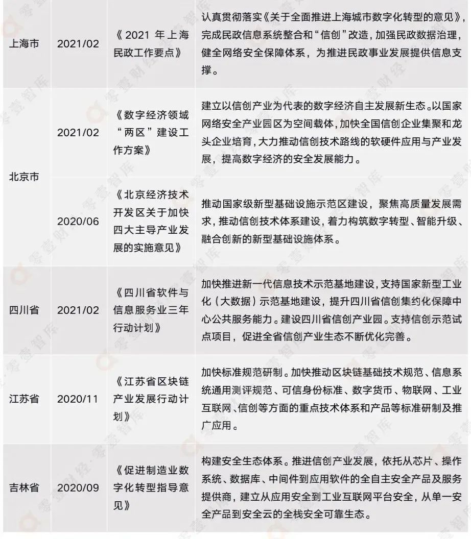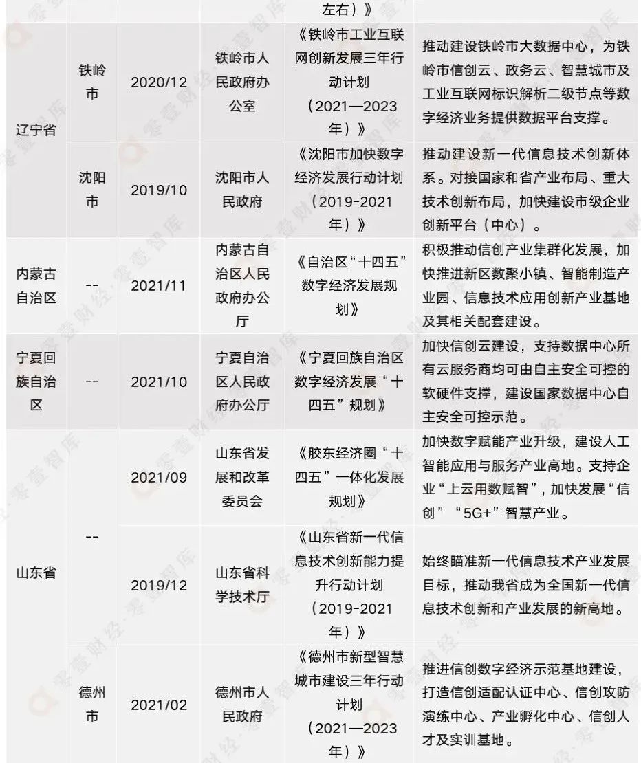 附錄二:全國各省市信創相關政策匯總(截至2021年12月)