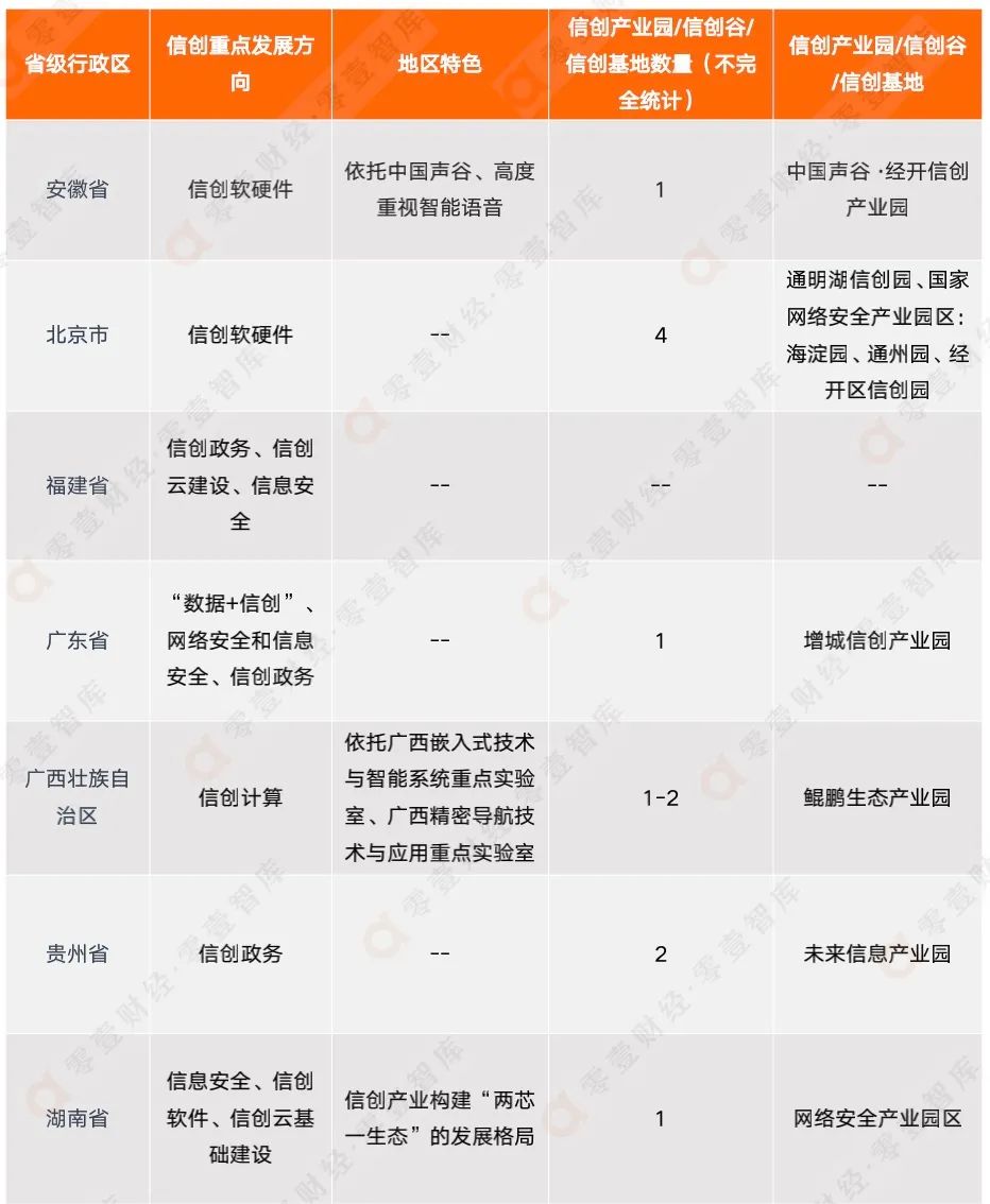 隨著信創發展到了一定階段,各地政府對當地信創產業發展要求以及路線不可避免地發生了改變。根據各地方政府近兩年來發布的最新的信創相關政策文件可以看出,以浙江省、北京市、四川省為代表的省級行政區因地制宜,明確提出在當地建設信創基地,依托當地企業、科研院所等優勢,在當地建立信創生態,避免在信創發展中后期可能存在的受制于人的情況。以天津市、山東省、安徽省為代表的省級行政區則加速發展信創硬軟件,推進信創、人工智能、5G+等多熱門領域協同發展發展,力求在信息技術領域全方面、立體化發展。