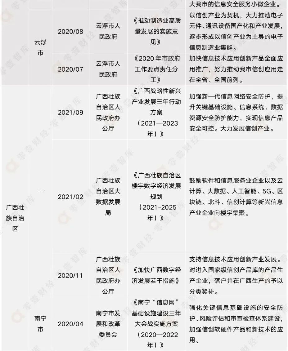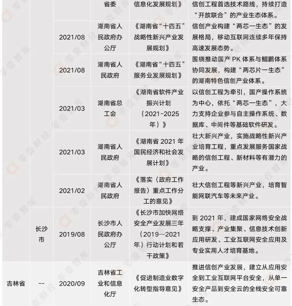 雖然信創產業如今大熱,但鮮有政府出臺信創專項政策,目前僅有廣州市工業和信息化局出臺的《廣州市軟件和信創產業鏈高質量發展三年行動計劃(2021-2023年)》。信創產業的發展并不久遠,相信隨著信創的進一步發展,其重要性會更加凸現,政府的關注度和重視程度也會大幅提高。
