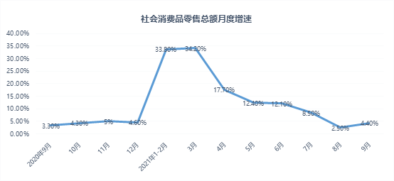 數(shù)據(jù)顯示,今年我國(guó)第三季度GDP增速今為4.9%,低于預(yù)期。9月份,社會(huì)消費(fèi)品零售總額36833億元,同比增長(zhǎng)4.4%。8月份增速更為慘淡,僅為2.5%,創(chuàng)近一年來新低。