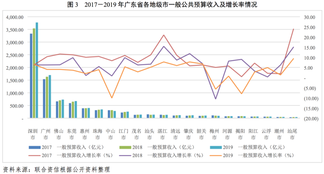 3.廣東省各地級市財政收入對發債城投企業債務的支持保障能力