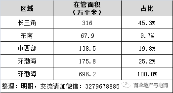 寶龍商業(yè)長(zhǎng)三角在管面積占比45%,長(zhǎng)三角運(yùn)營(yíng)收入占比65%。