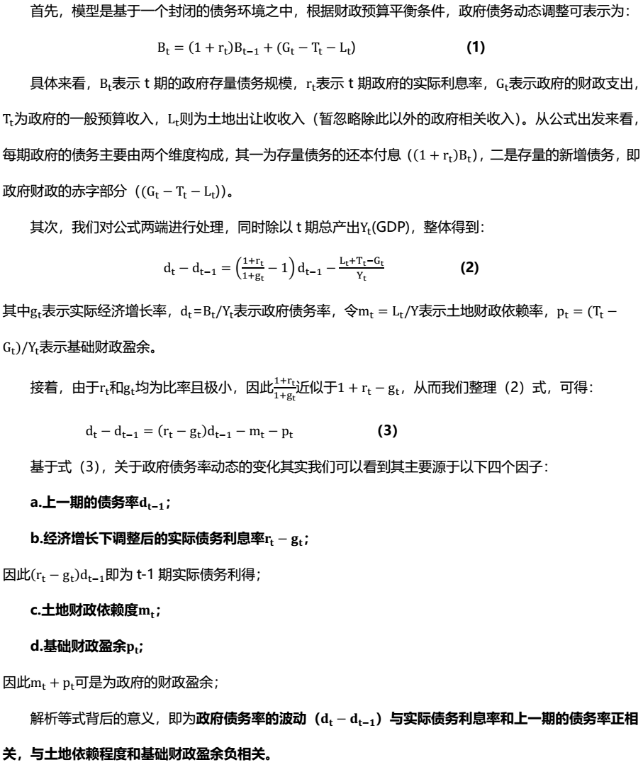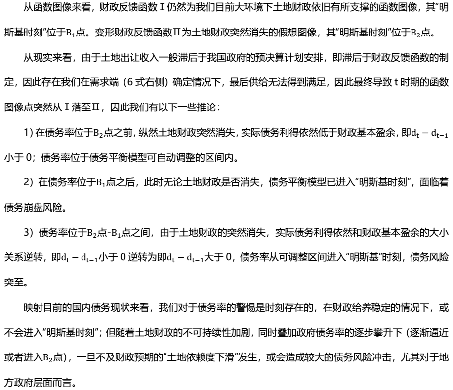 但從價值和目的來看,基于前人的一些理論研究,我們動態(tài)分析了就土地財政的不可持續(xù)性趨勢和隱性債務(wù)的“灰犀牛”兩個問題之下債務(wù)的衍化,指出兩者對于整體債務(wù)和城投迫近于明斯基時刻存在一定的壓力導(dǎo)向。