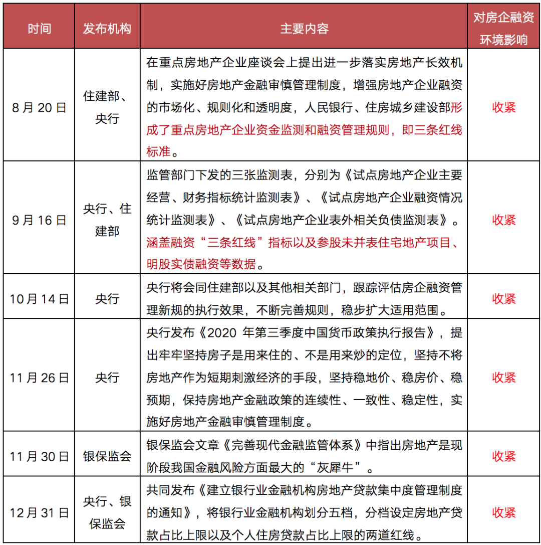 表: 2020年提出三道紅線后部分房企融資相關(guān)政策及表態(tài)