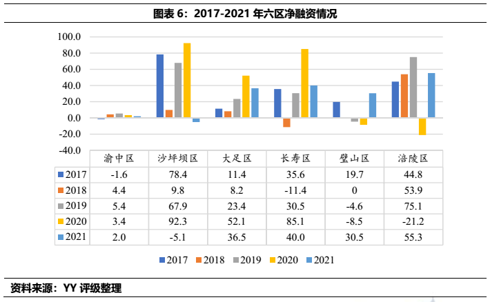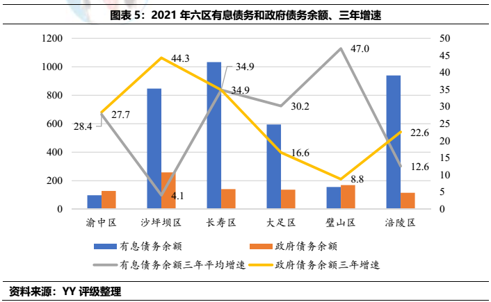重慶的債券市場由網紅步入穩健,但區域間方差較大,值得我們下沉探究,本文將選取其中六大受市場關注的區域進行展開:渝中、沙坪壩、涪陵、璧山、大足、長壽;為啥選這幾個樣本構建梯隊,原因有三,首先是從城區遠近來看,渝中沙坪壩等屬于核心城區,璧山等新城區,大足長壽等更遠些;其次是工業條件和發展程度看,也有明顯的梯隊;最后從市場認可和網紅程度看,大足、長壽都是易受關注主體,故而選取6個樣本,側面剖析重慶的特征。