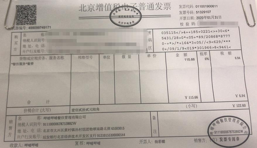 以日常生活中的餐飲為例,在消費結束后開具增值稅發票,發票金額中經常會出現三個金額,如下圖所示,作為消費者最終要支付的金額為122.6元。但通過發票可以看出,其組成結構為兩部分:即115.66元+6.94元。115.6元是餐飲服務實際發生的金額;6.94元是伴隨這項消費產生的增值稅。