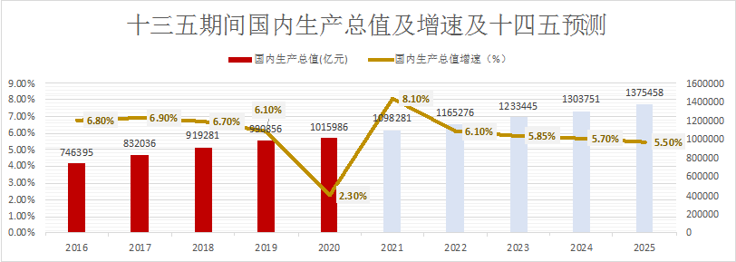 2020年是“十三五”的收官之年,2021年是“十四五”的開局之年。無論對于國家,還是房地產行業與企業來說,這兩年都是承前啟后的關鍵年份。預計十四五末GDP增速放緩至5.2%-5.7%之間。