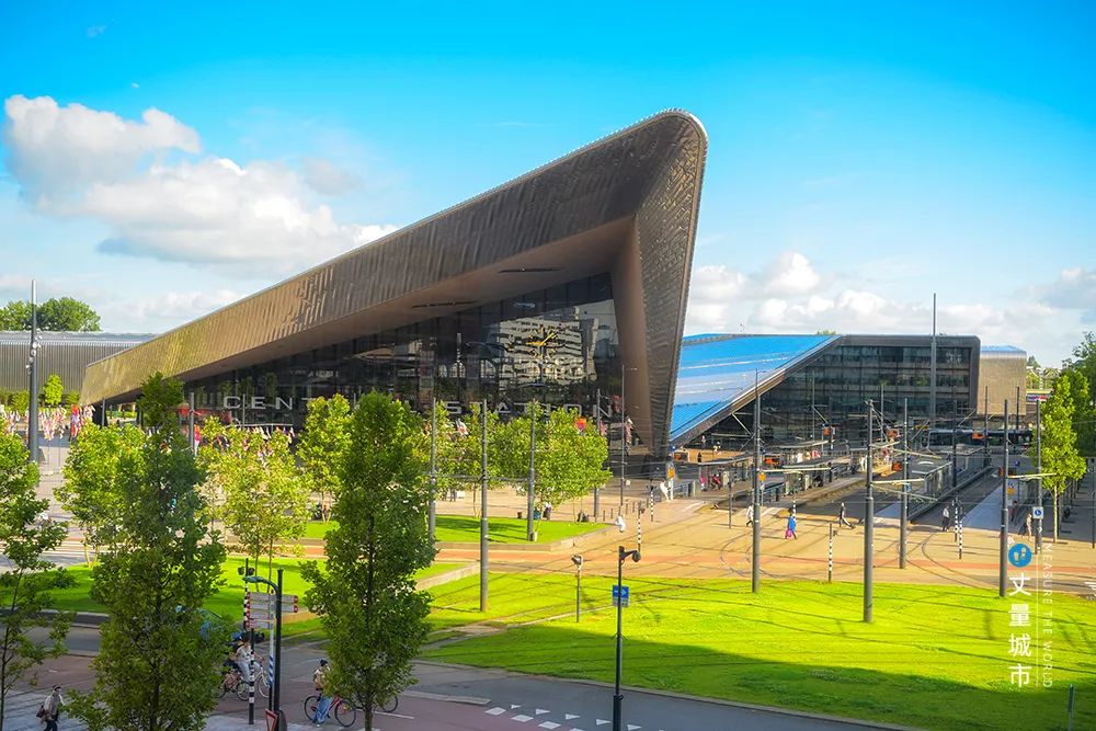 如鹿特丹火車站區域,定位「全球本土化的城市街區」,打造鹿特丹向全歐洲展示自己的窗口。火車站于2014年重建裝修,正面呈鈍角結構,塑造了城市的現代化門面;候車大廳由木材料和玻璃構成,彰顯車站都市化、國際化的定位。