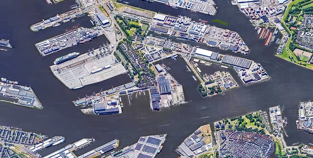 因此,港口和工業區逐步西遷離開老城,新港區由老城沿新水道向北海綿延40公里,其面積由二戰后26.3Km2逐步擴張至超過100Km2。