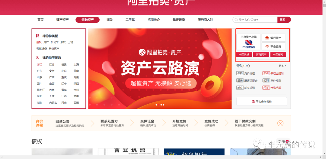 之前提到,法拍的火熱自然會(huì)引發(fā)上家債權(quán)市場投資人的注意,隱晦玩了20年的不良資產(chǎn)市場被這個(gè)所謂的門外漢饞的躍躍欲試,中國的三架“馬”車平安系開赴現(xiàn)場,大力用自己的生態(tài)圈去成就了另一個(gè)馬,債權(quán)市場的公開拍賣的火熱,平安功不可沒。接下來就是四大之一的信達(dá),因?yàn)榕c杭州小平臺(tái)的一年簽約到期,不見效果,也轉(zhuǎn)投阿里,兩大貨源的推波助瀾,已經(jīng)給市場一記重?fù)簟?/p>