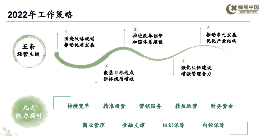 2022年,遠(yuǎn)洋集團(tuán)將持續(xù)聚焦主業(yè)發(fā)展,同時(shí)堅(jiān)持精細(xì)化管理,加強(qiáng)經(jīng)營(yíng)管理能力,完善經(jīng)營(yíng)管理體系。在確保財(cái)務(wù)狀況穩(wěn)健的原則下, 通過(guò)提高投資標(biāo)準(zhǔn)、堅(jiān)持城市深耕、加快周轉(zhuǎn)等策略,保持開(kāi)發(fā)主業(yè)高質(zhì)量、可持續(xù)發(fā)展,并繼續(xù)推動(dòng)其他業(yè)務(wù)的協(xié)同發(fā)展,為股東和客戶(hù)創(chuàng)造最大價(jià)值。