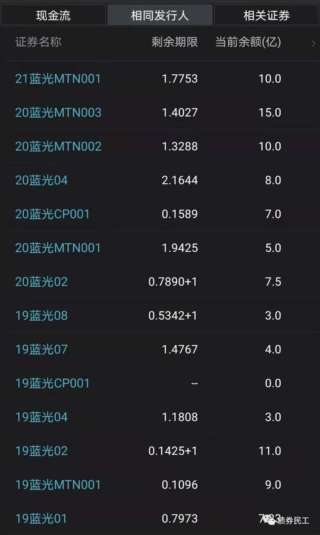 根據(jù)公開(kāi)信息,“19藍(lán)光MTN001”的存續(xù)債券金額9億元,發(fā)行票面利率為7.5%,到期日是2021年7月11日(因周末原因順延至7月12日)。藍(lán)光發(fā)展最近一次的債券是“21藍(lán)光MTN001”,債券起息日是2021年3月10日。藍(lán)光發(fā)展目前國(guó)內(nèi)信用債券市場(chǎng)存續(xù)債券13只,存續(xù)金額74.23億元。而此前,據(jù)媒體報(bào)道藍(lán)光發(fā)展被曝部分非標(biāo)產(chǎn)品逾期,旗下多只債券頻繁異動(dòng)。