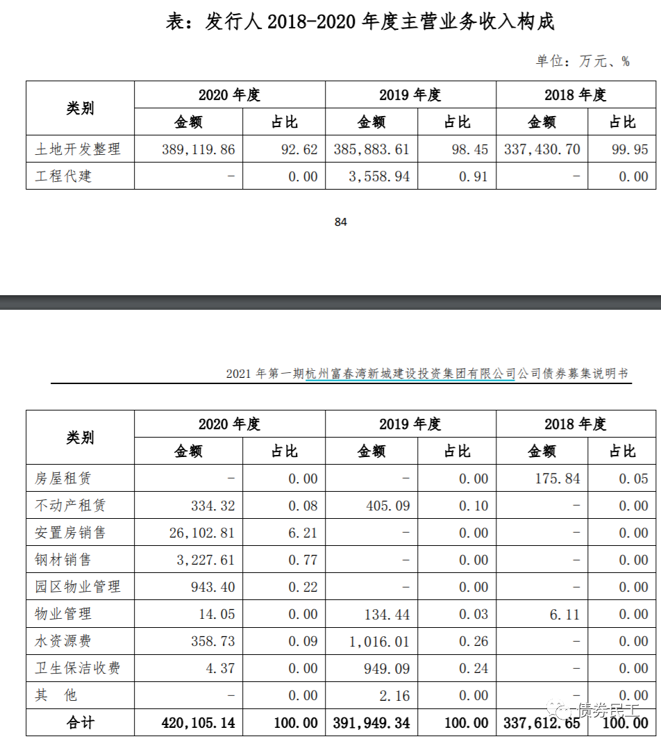 富春灣建投的實際控制人是杭州市富陽區國資辦,最新主體信用等級為AA+(中誠信國際)。富春灣建投是富春灣新城土地開發整理和國有資產管理的主體,主要業務為富春灣新城的土地開發整理,同時包括部分工程代建、安置房銷售、不動產租賃和鋼材銷售等業務。