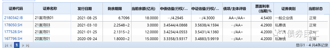目前,富春灣建投存續債券金額為48億元,存續債券4只,存續債券產品包括企業債券和私募公司債券。(wind統計口徑中,債權融資計劃未被列為債券品種)