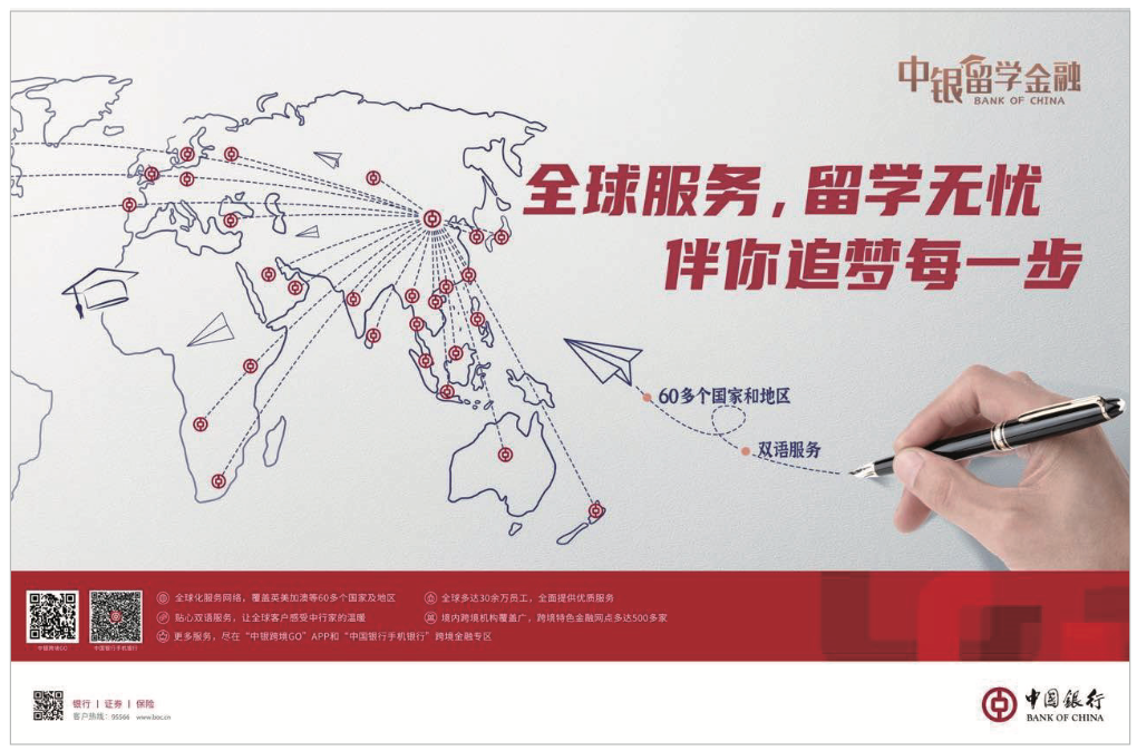 在跨境金融領(lǐng)域,中行始終保持行業(yè)領(lǐng)先,服務(wù)了全國大約50%以上的留學(xué)家庭。目前,中行設(shè)立了500多個覆蓋全國的跨境金融中心,并擁有覆蓋英、美、澳、加等60多個國家和地區(qū)的全球化服務(wù)網(wǎng)絡(luò)。