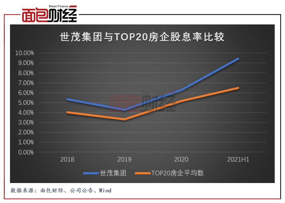 不僅分紅穩(wěn)定,世茂集團(tuán)的股息率在同行中處于較高水平。2021年上半年,世茂集團(tuán)股息率為9.45%,高出TOP20房企平均股息率約3個(gè)百分點(diǎn)。于2021年8月,世茂集團(tuán)被納入首期恒生滬深港(特選企業(yè))高股息率指數(shù)。