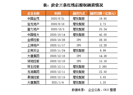 除了在供應鏈金融方面的逐步嚴控收緊,三條紅線后,監管在股權融資、信用債等方面也加強監管,加大對房企融資的限制。在股權融資方面,2021年至今沒有企業上市成功,且當前上市招股書在有效期的僅有三巽控股、天泰控股、新星宇控股這3家企業。與此同時,非IPO股權融資發行審核更嚴,2021年里僅有大唐控股發行1.35億港元的增發配股,但這是基于其2020年底上市IPO成功后行使的超額配股權,除此之外再無企業實現股權再融資發行。