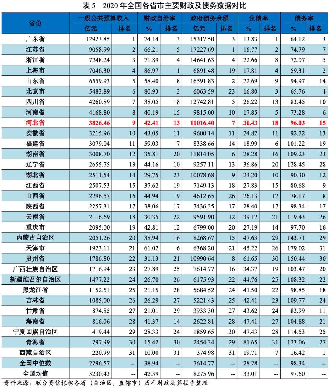 2.河北省下轄各地級市的財政實力及債務(wù)情況