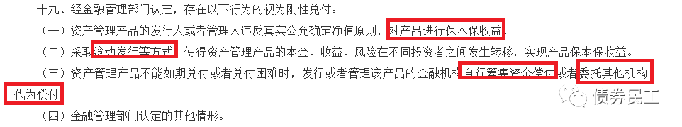 指導意見中,對于剛性兌付的具體類型界定非常明確:保本保收益、資金池保本保收益以及自籌或者委托其他機構(gòu)代償資產(chǎn)產(chǎn)品。這幾種類型都是金融機構(gòu)進行剛性兌付的常用手段。從一個角度來看,這也是投資者依賴剛性兌付的根源。