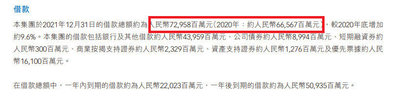 根據寶龍地產年報的披露,截至2021年末,借款總額約為729.58億元。