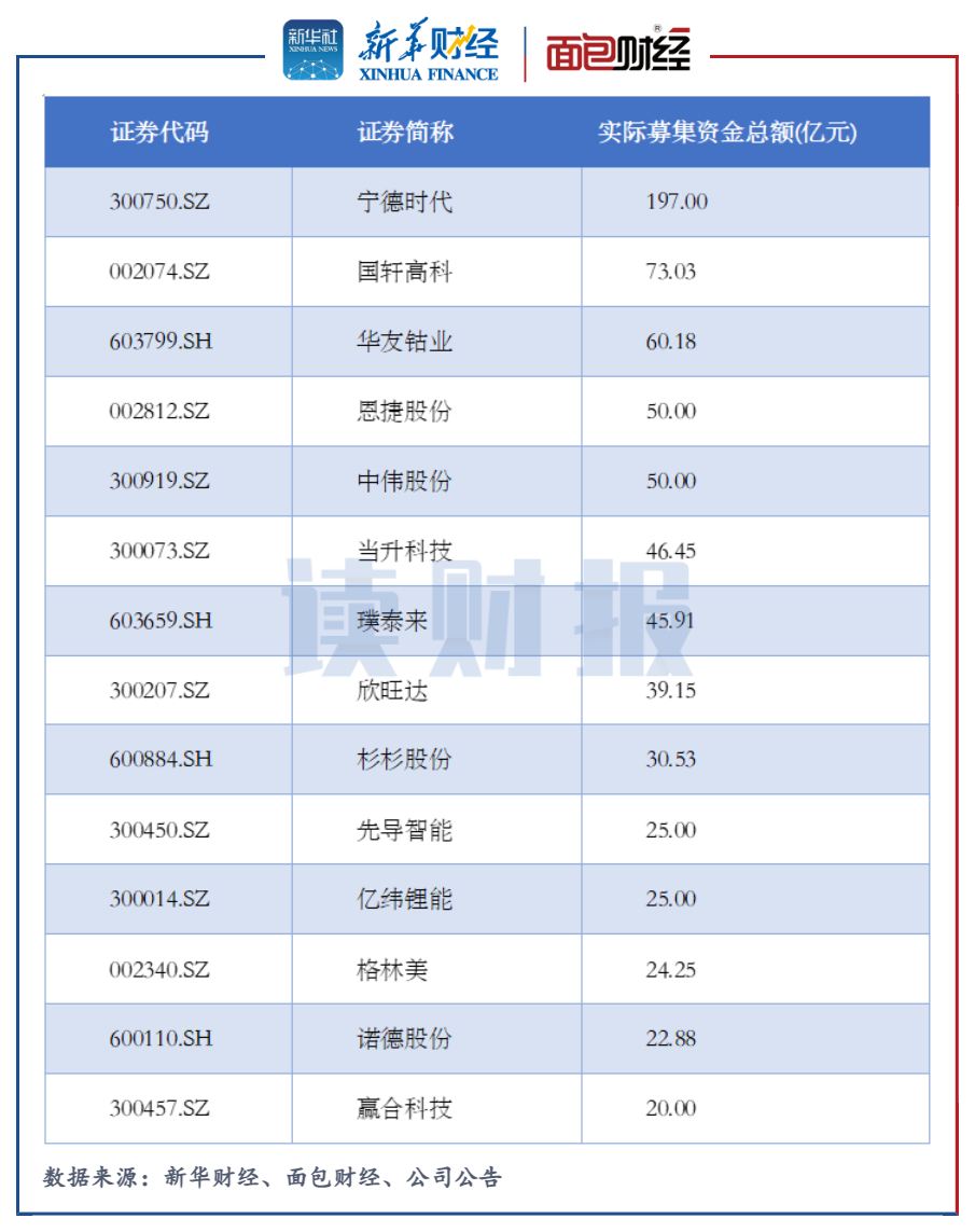同時,鋰電池板塊中還有約20家上市公司的定增方案正在辦理過程中,合計的募資總額超950億元。
