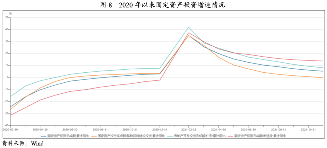 鋼鐵下游需求主要分為以房地產(chǎn)和基建為主的建筑業(yè),以及以機(jī)械、汽車、家電、船舶等為主的制造業(yè)。其中,建筑業(yè)需求是中國(guó)鋼材消費(fèi)的主要領(lǐng)域之一,消費(fèi)量占比達(dá)鋼材總產(chǎn)量的一半以上,中國(guó)鋼鐵消費(fèi)總量受宏觀經(jīng)濟(jì)形勢(shì)影響明顯。2021年以來,鋼材表觀消費(fèi)量先增后降,且下半年用鋼需求弱于往年。分行業(yè)來看,基建投資維持疲軟狀態(tài),房地產(chǎn)投資增速下降明顯,相比之下制造業(yè)用鋼需求表現(xiàn)較好,但對(duì)鋼材整體消費(fèi)量帶動(dòng)有限。
