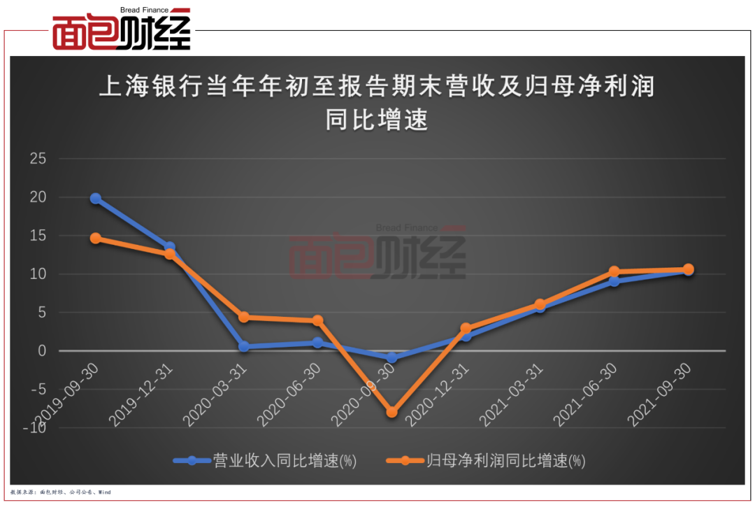 得益于中國率先控制住疫情以及自身經(jīng)營質(zhì)量的提升,上海銀行2021前三季度營收與利潤增長速度明顯提升,重回雙位數(shù)增長通道。