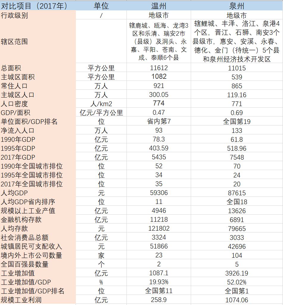 從地理位置上說泉州北有省會福州,南有特區(qū)/計劃單列市/副省級等各類資源加持的廈門,夾縫中求生存的泉州只是一個連一把手都不是省委常委的地級市,各方面都凸顯先天不足。先看人口,城市總面積與總?cè)丝趦傻叵喈?dāng),但是主城區(qū)面積泉州僅為溫州的49.81%;泉州城區(qū)人口約119萬人,為溫州的40%。119萬人是什么概念?都達不到通一條城市輕軌150萬人的要求。