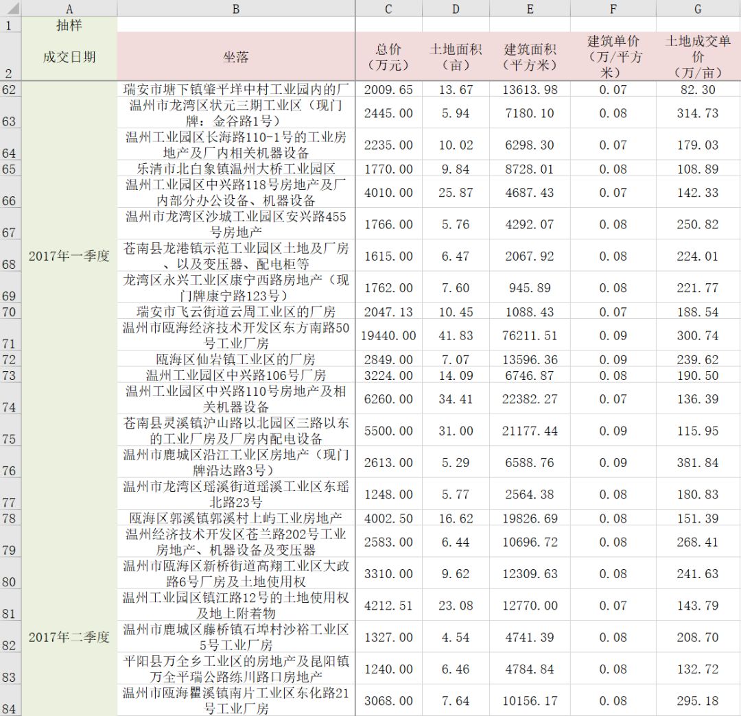 表3 部分溫州成交工業(yè)地價抽樣(數(shù)據(jù)來源淘寶司法拍賣,由后稷投資評估部匯總整理)