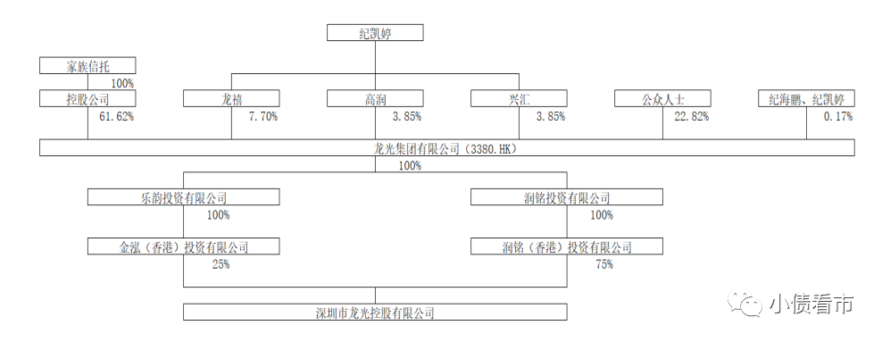 從股權(quán)結(jié)構(gòu)看,紀海鵬和女兒紀凱婷通過家族信托實際控制龍光集團,是龍光實際控制人。
