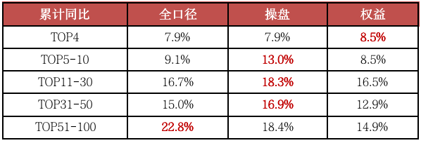 據(jù)克而瑞重點(diǎn)監(jiān)測的40家房企增速來看,增速在20%以上的房企有14家,從百強(qiáng)各梯隊(duì)房企不同口徑業(yè)績增速對比來看,前四強(qiáng)房企全口徑業(yè)績平均增速僅為7.9%,TOP5-10房企全口徑業(yè)績平均增速僅為9.1%。