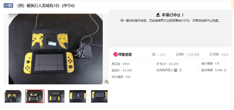 “同一案件的系列拍品,已經(jīng)連續(xù)兩次出現(xiàn)惡意抬價(jià)行為,對(duì)其他拍品終止拍賣(mài)。”根據(jù)平臺(tái)公告,受近兩日天價(jià)游戲王卡牌和U盤(pán)的影響,已中止對(duì)該持有人其他拍品的拍賣(mài)活動(dòng)。