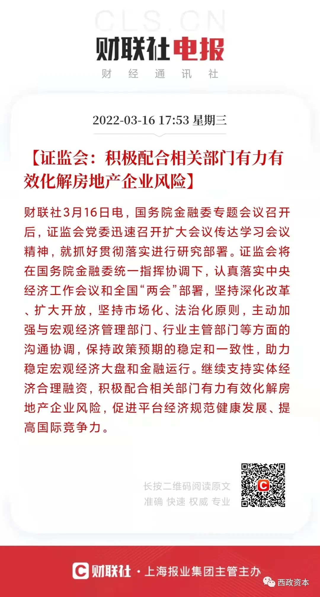 五、證監會:積極配合相關部門有力有效化解房地產企業風險