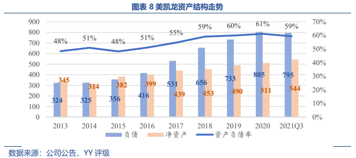 回顧美凱龍家居的這些年,作為家居賣場龍頭,2015年后總資產(chǎn)快速增加,這背后是權(quán)益融資與債務(wù)融資的雙增長。資金主要流向投資性房地產(chǎn)領(lǐng)域,重資產(chǎn)的擴(kuò)張模式使得美凱龍成為“商業(yè)地產(chǎn)企業(yè)”,雖然已宣稱多年的“輕資產(chǎn)”轉(zhuǎn)型,但仍在增加自有商場數(shù)量,尚需投資規(guī)模仍較大。
