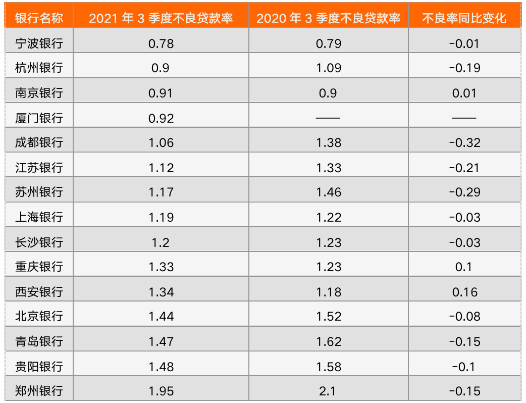 尤其是在資產(chǎn)質(zhì)量方面,2021年前三季度寧波銀行的不良率僅為0.78%,較上年同期的0.79%,進(jìn)一步下降了0.01個(gè)百分點(diǎn)。由此可見,該行將風(fēng)險(xiǎn)防控作為經(jīng)營首位,始終遵循著“控制風(fēng)險(xiǎn)就是減少成本”的風(fēng)控理念,嚴(yán)格把控信貸風(fēng)險(xiǎn)發(fā)生的每個(gè)環(huán)節(jié)。零壹智庫對(duì)比發(fā)現(xiàn),寧波銀行憑借著0.78%的超低不良率,不僅在15家A股上市城商行之中排名第一,甚至在38家A股上市銀行之中也排在首位,超越了國有大行與全國性股份制銀行,足以說明其資產(chǎn)質(zhì)量處于行業(yè)領(lǐng)先水平。