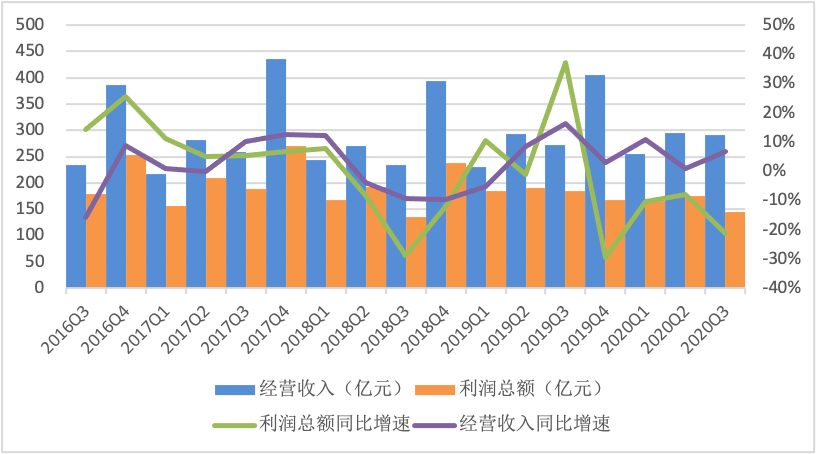 整體來看,2020年前三季度,信托業實現經營收入841.6億元,同比增長5.78%,利潤總額為485.89億元,同比下降13.13%,降幅較上半年擴大4.08個百分點。