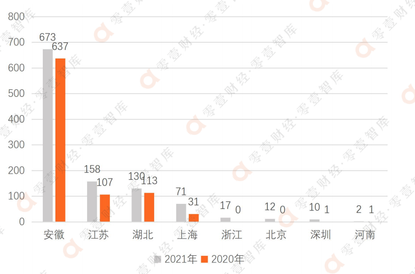 招股書顯示,截止到2021年末在全國1073家門店中,華東地區(qū)和華中地區(qū)是老鄉(xiāng)雞的主要銷售地區(qū),其中安徽地區(qū)為673家、江蘇和湖北地區(qū)分別有158和130家,而上海有71家,北京地區(qū)有12家,但從增長情況來看,江蘇、上海、北京、深圳等城市成為其近年來主要布局區(qū)域。