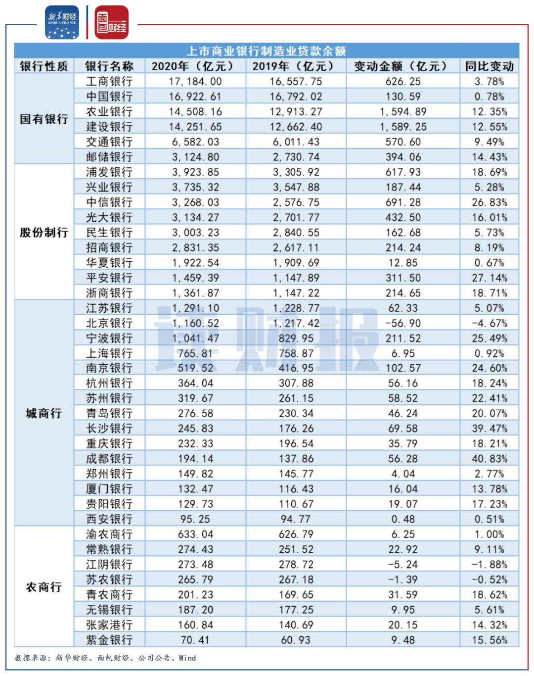 2020年上市銀行制造業貸款超10萬億元:國有銀行是投放主力資產質量逐步提升