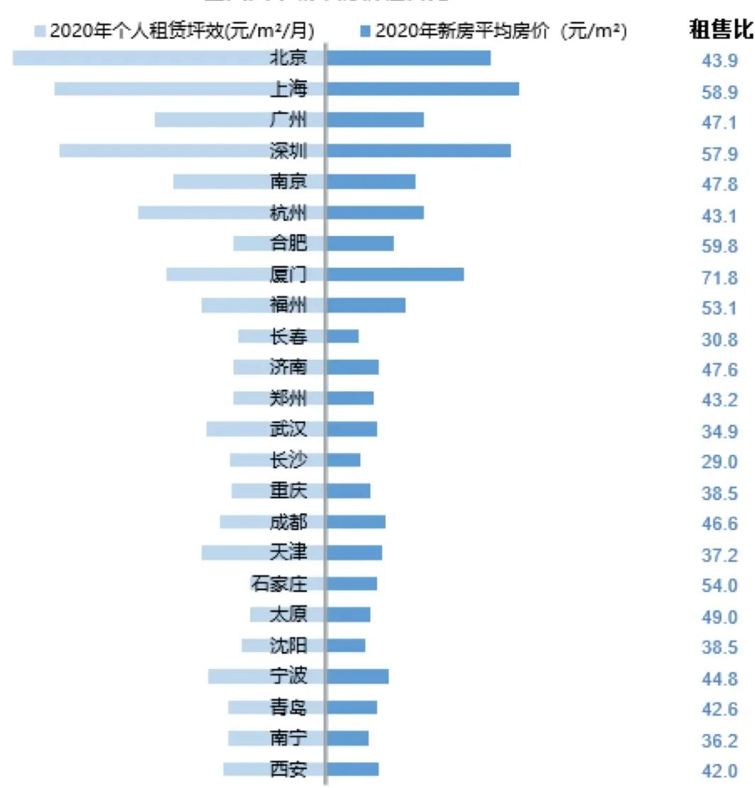 眾所周知,近年來一二線城市商品房價格一直維持在較高水平,而租金的漲幅遠低于房價的漲幅,一二線城市的租售比遠低于合理的租售比區間水平,買房門檻日益攀升。在房價高企的當下,租賃需求愈發旺盛,這些市場更具發展機會。