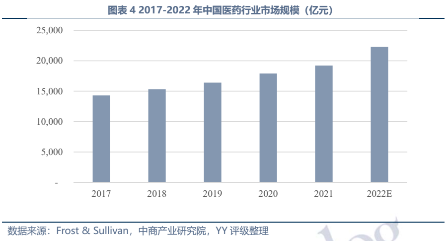 近年來,我國醫(yī)藥市場規(guī)模保持較快速度增長, 2021年達19,220億元。
