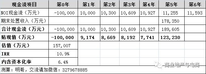 例1:某購物中心NOI值1億,資本化率6%