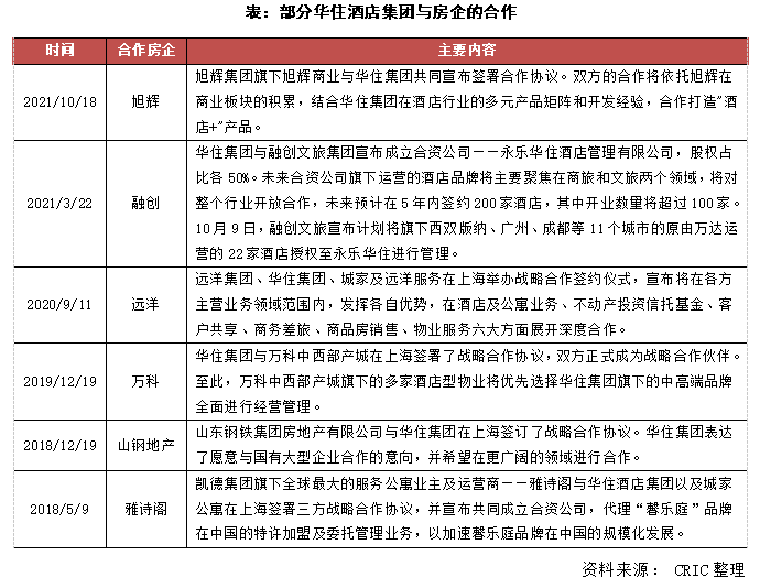 華住集團(tuán)較快走出修復(fù)行情除了是因為集團(tuán)主打的經(jīng)濟(jì)型酒店相對而言在疫情的打擊下恢復(fù)較快,同時也是因為企業(yè)旗下管理加盟和特許經(jīng)營酒店的業(yè)績增長迅速,收入占比達(dá)到了37.1%,是歷年來的最高值。華住集團(tuán)很早開始就推進(jìn)輕資產(chǎn)化,從2016年開始其管理加盟及特許經(jīng)營酒店占比就超過了80%,截至2021年中期這一數(shù)字為85%,繼續(xù)保持在高位。在這個背景下,華住集團(tuán)與房企也開始積極合作以擴(kuò)大酒店運營規(guī)模,比如在今年3月和融創(chuàng)成立了合資公司永樂華住,此后融創(chuàng)又在10月9日將原來由萬達(dá)酒店運營的22家酒店交于永樂華住運營。此前,華住還和遠(yuǎn)洋、萬科、山鋼地產(chǎn)、雅詩閣等企業(yè)有戰(zhàn)略合作,加上此次跟旭輝達(dá)成合作,其輕資產(chǎn)擴(kuò)張更進(jìn)一步。