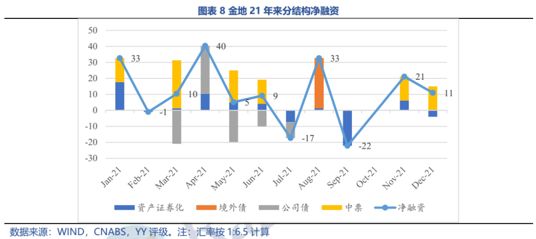 從邊際看,21年下半年銷(xiāo)售、拿地均斷崖式下降,下滑幅度位列非民企前列,全年高溢價(jià)、低權(quán)益比拿地依舊常見(jiàn),經(jīng)營(yíng)邊際有所弱化,但另一方面融資未見(jiàn)受阻。政策收緊與需求收縮對(duì)金地的經(jīng)營(yíng)和財(cái)務(wù)影響并不對(duì)稱。
