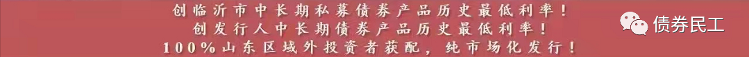 2、強(qiáng)調(diào)區(qū)域最低利率+純市場(chǎng)化發(fā)行的海報(bào),比如發(fā)行利率創(chuàng)臨沂市中長(zhǎng)期私募債利率最低、發(fā)行人歷史最低利率、100%純市場(chǎng)化發(fā)行。