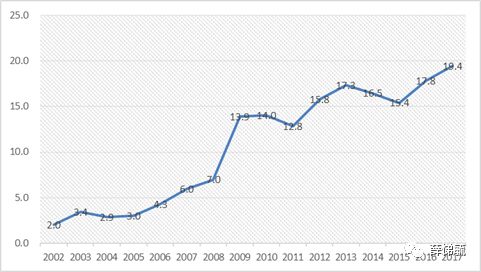 圖6.2002-2017年我國(guó)歷年社會(huì)融資規(guī)模