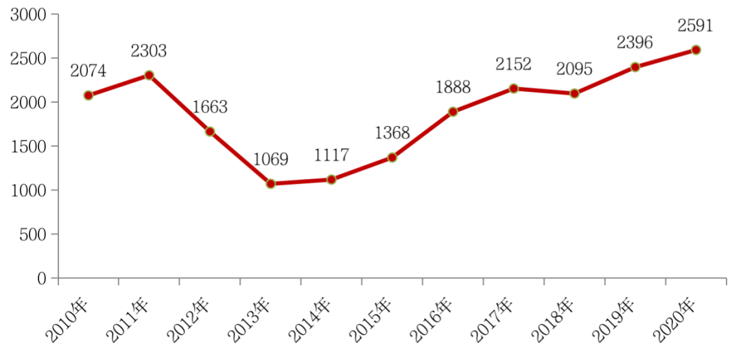 具體到各城市來看。長期被杭州壓制的上海重回榜首,2020年成交金額高達2840億元,同比上漲了53%;排在金額榜第二位的是廣州,在大規(guī)模的優(yōu)質土地供應下,廣州2020年成交金額達2465億元,同比漲幅接近5成;